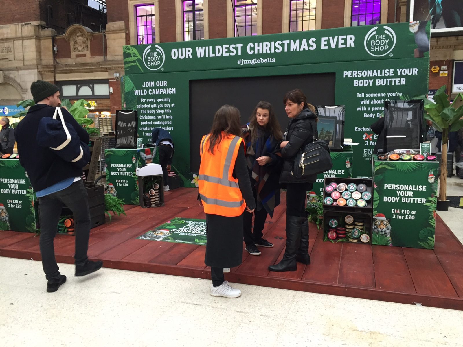 The aim was to create an engaging space that would entice people walking through Victoria Station to buy a body butter and get it personalised for free as a Christmas gift.