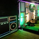 The Music Zone was at the back of the venue with its own cool vibe highlighted with freestanding LED cube frames, lit seating cubes, a stage for the bands and a large freestanding light box designed to look like an old-school boom box.
