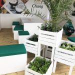 For this particular job, we built 52 seats, 5 tables, 2 pergolas, 2 planters, a bar and outside walling and flooring all in our in-house workshop. All of the furniture was in keeping with the simple, clean design and the Chang colours of pure white and Chang emerald green.