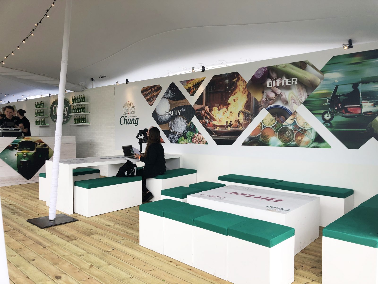 We also brightened up the stand with Chang logos and graphics out of vinyls and foamex, which illustrated the link of Chang beer and their guest partner’s food, serving delicious Thai food from the food booth corner.